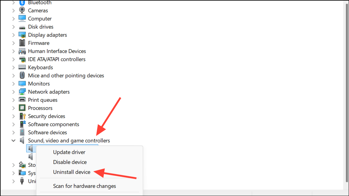 Step 3: Expand "Sound, video and game controllers," right-click "Realtek Audio" or "Realtek High Definition Audio," and choose "Uninstall device." If prompted, check "Delete the driver software for this device." Restart your computer.