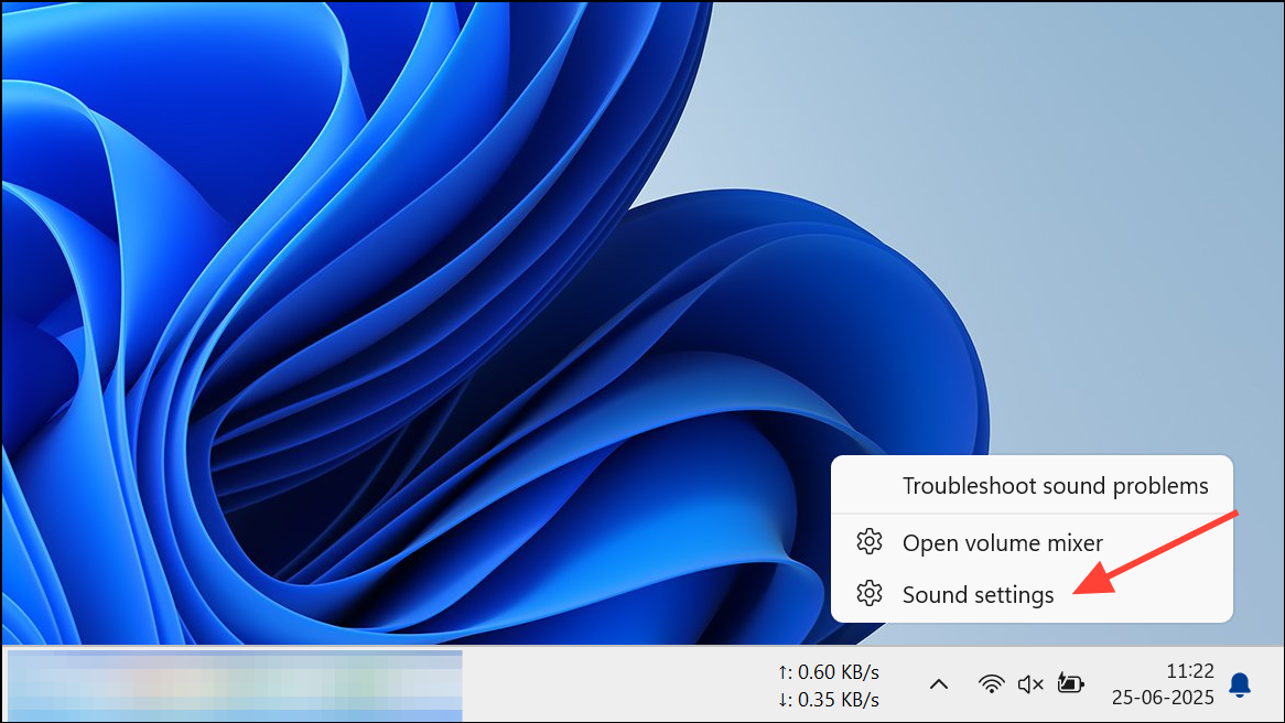 Step 1: Right-click the speaker icon in the system tray and select "Sound settings."