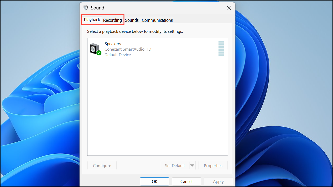 Step 4: Use the "Playback" and "Recording" tabs to enable, disable, or set default devices. Right-click within these tabs and select "Show Disabled Devices" if you do not see your hardware listed.