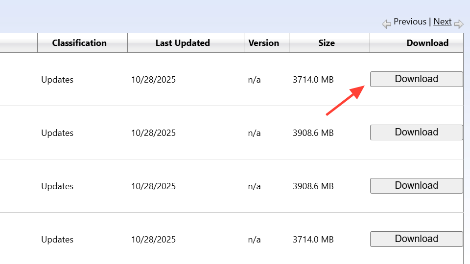 Step 2: Download the correct package (24H2 or 25H2) for your system. Installing the wrong edition or architecture will fail or not apply the feature.