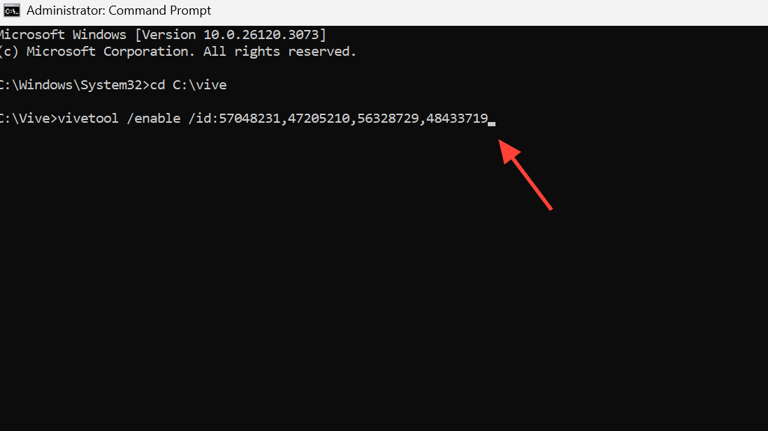vivetool /enable /id:57048231,47205210,56328729,48433719