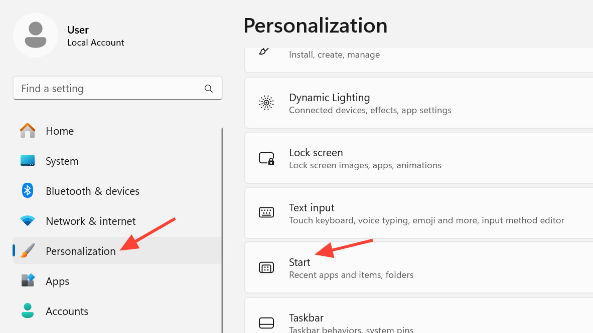 Step 1: Manage Start content in Settings. Go to Settings > Personalization > Start to choose whether to show Recommendations and adjust pinned content behavior. Microsoft’s Start customization guidance is here: support.microsoft.com.