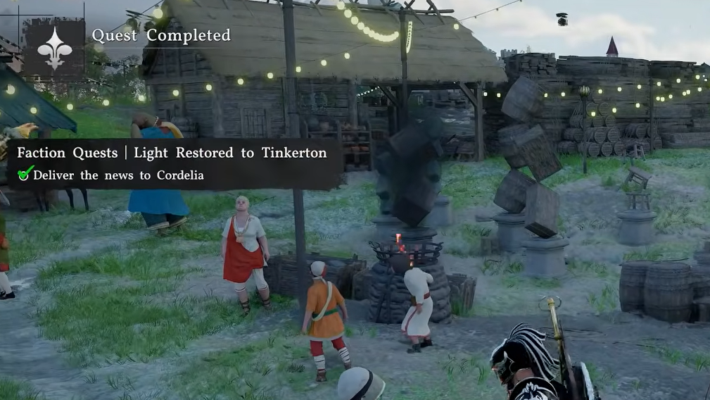 Step 3: Return to Tinkerton and speak with Cordelia to complete the quest. This unlocks a Provisioner's Shop in the northern part of town.
