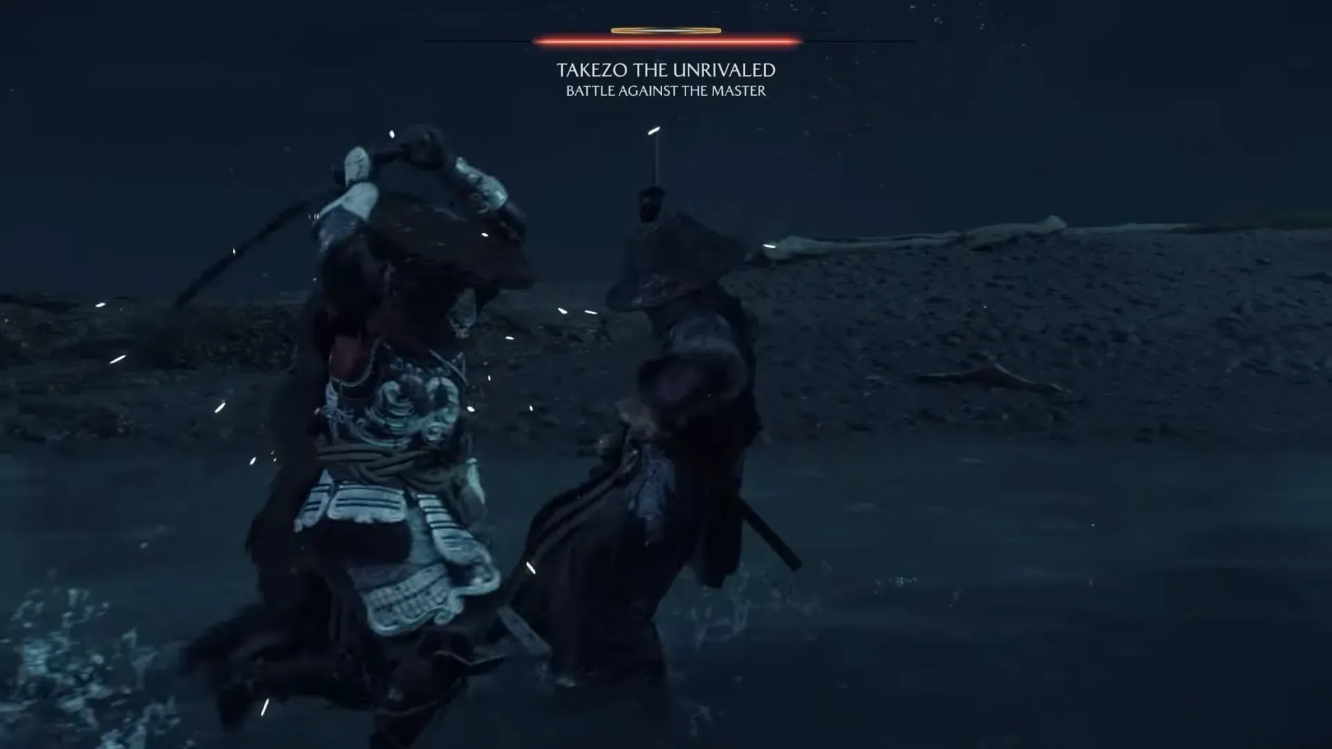 After the fifth disciple falls, meet the messenger’s request at the Coastal Dueling Tree and wait at the campsite. Follow Takezo to the beach for a two‑phase duel. Bring upgraded health, additional Spirit, and a fully sharpened kit; this fight hits hard and runs long.