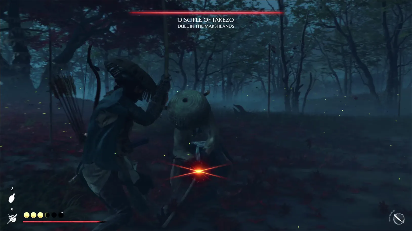 - In the Marshlands: Respect the red‑glint chains by moving off‑line early. The long, sheathed draw is a free parry window. If needed, quickfire stuns like Metsubushi will close the duel safely.