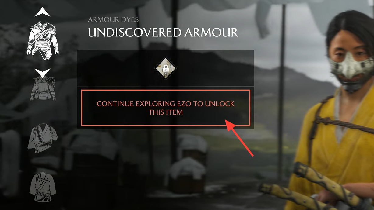 | White Dye Merchant | Yotei Grasslands, near the Yotei River | Available on arrival | White-toned armor dyes | One of the earliest merchants you’ll encounter |