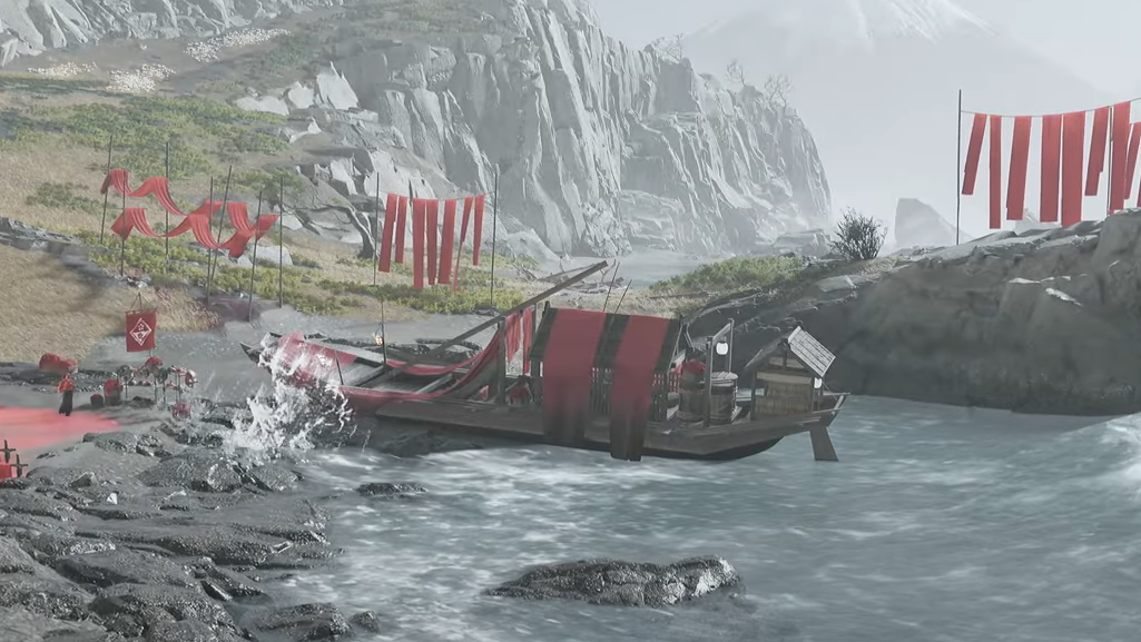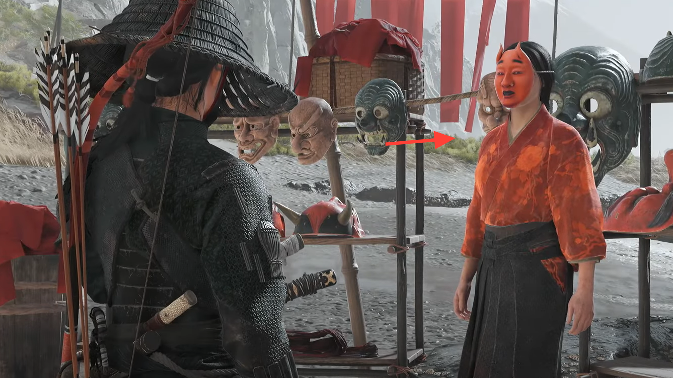 | Crimson Dye Merchant | Ishikari Plain, Stone Jaw Coast | Light the campsite fire to summon the boat | Crimson armor dyes, weapon kits, hats, masks, resources | Boat arrives via a short, scripted scene after you start the fire |