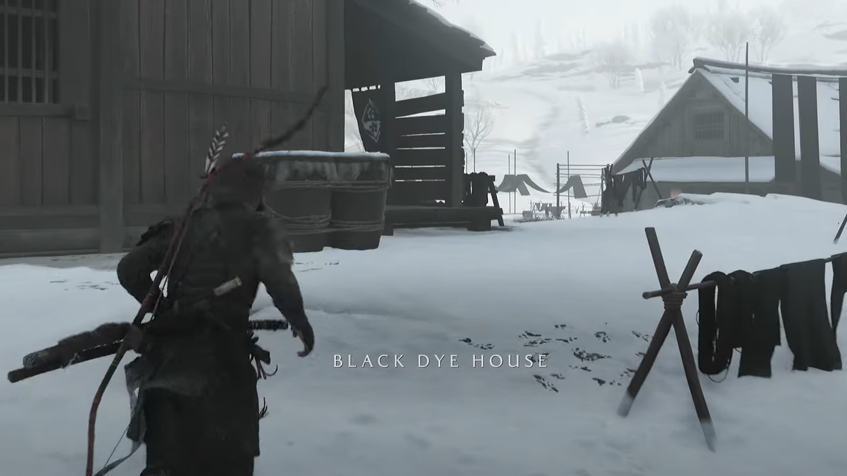 | Black Dye Merchant | Teshio Ridge, west/northwest of Red Crane Inn, near Teshio River and below Sarobetsu Forest | Reach the cliffside camp; full dyeing options unlock after progressing the Kitsune arc | Black variants for armor, select vanity gear, basic supplies | Camp is marked by black banners; the map label may show as “Black Dye House” |
