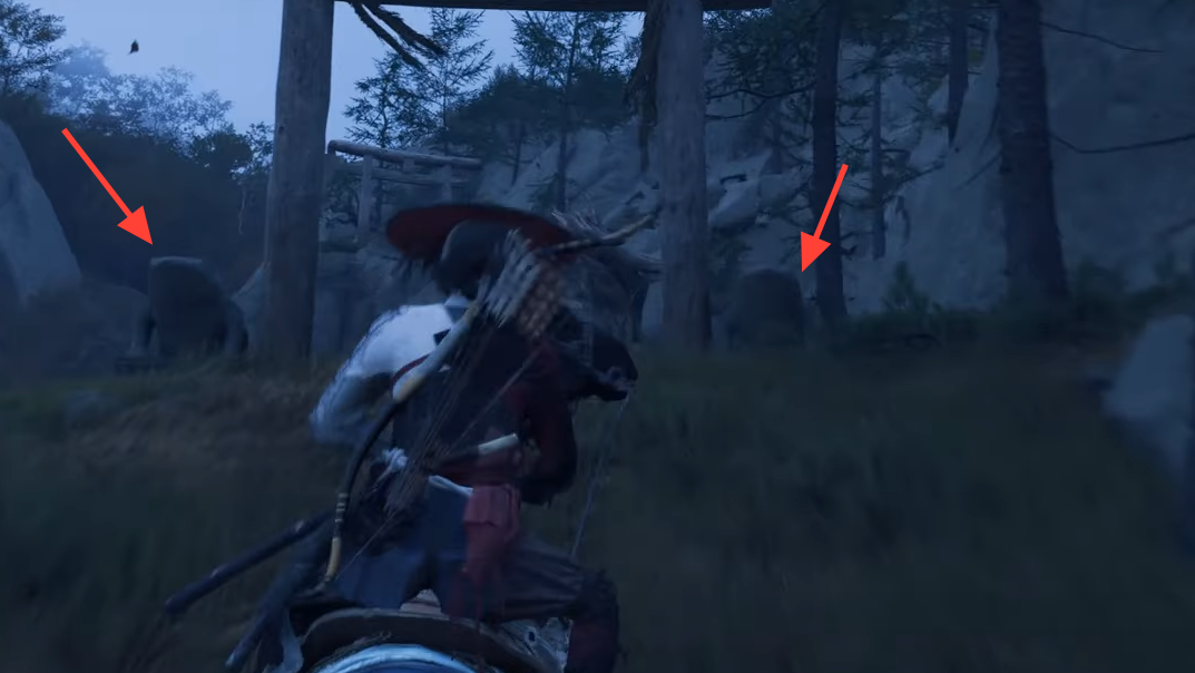 Head for the northern band of the Tokachi Range. The shrine path is marked by torii gates and environmental cues: tall rocks, cut cliff ledges, wooden markers, and lanterns that trace the intended route. Expect precision platforming with limited rest spots, so plan your climbs and swings rather than rushing the sequence.