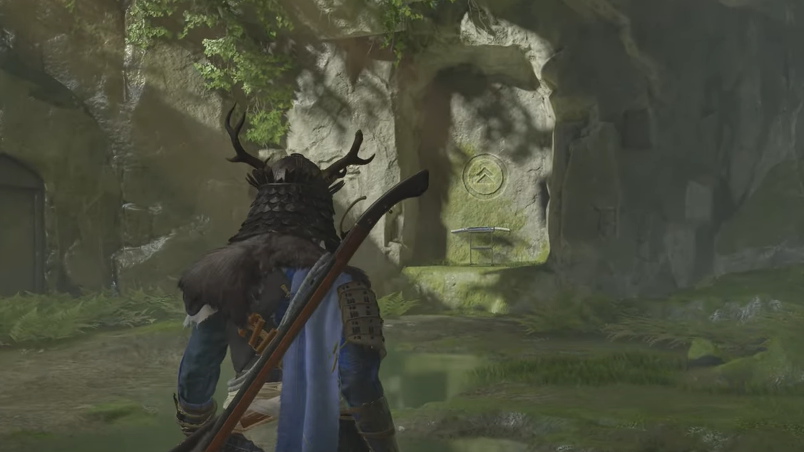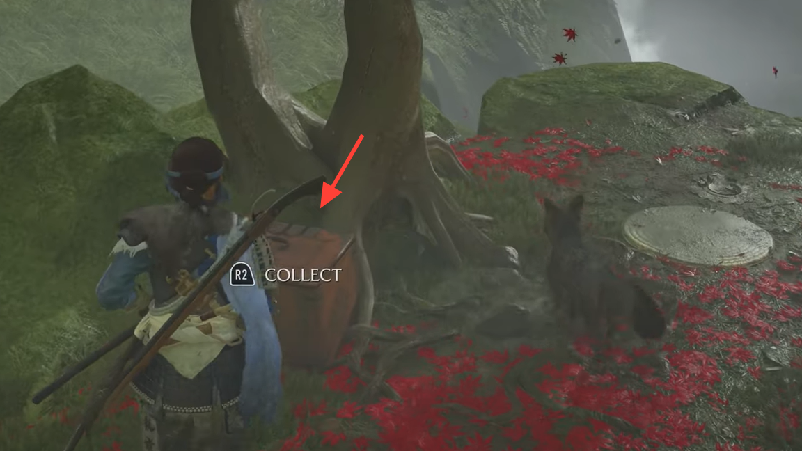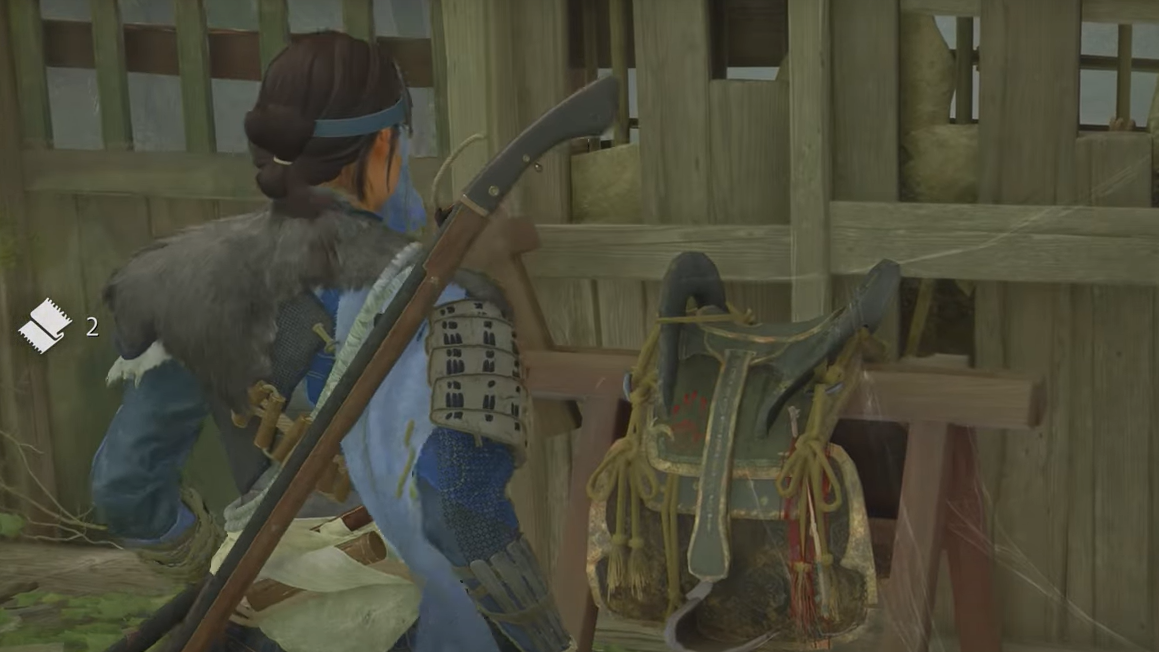 Step 2: Continue to the clearing with a waterfall and a dilapidated house labeled the Lost Shinobi’s Den. Enter and search the interior for relics from Jin’s life.
