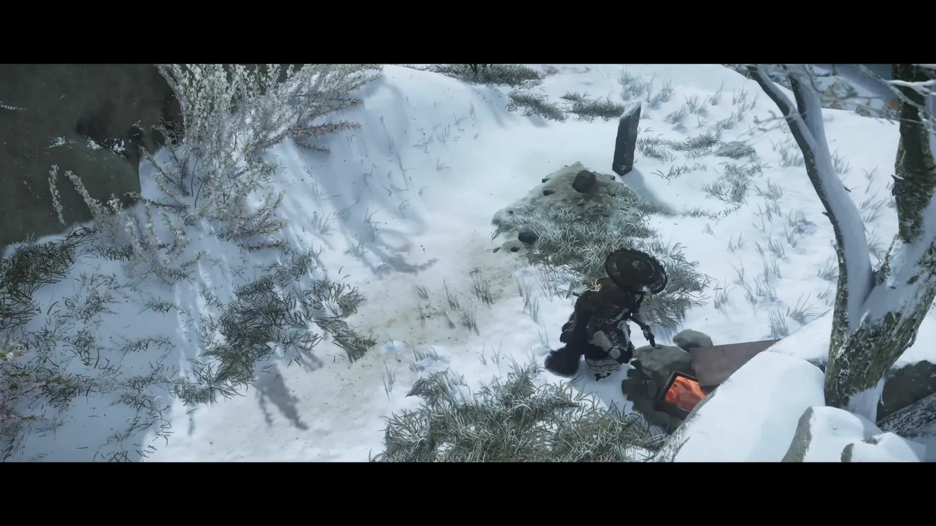 - Ambush timing: Expect the shinobi attack immediately after inspecting the sculpture at the eastern Hakodake Mountains tree. Clear them before the yuki mushi progress.