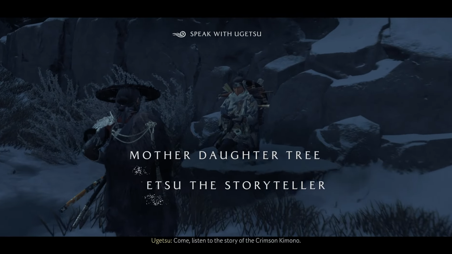 | Chapter 1 – The Lone Wolf | Teshio Ridge | Storyteller Ugetsu (Mother Daughter Tree, Sakuru Woods) | After reaching Teshio Ridge during The Kitsune | Crimson Kimono (Armor) |