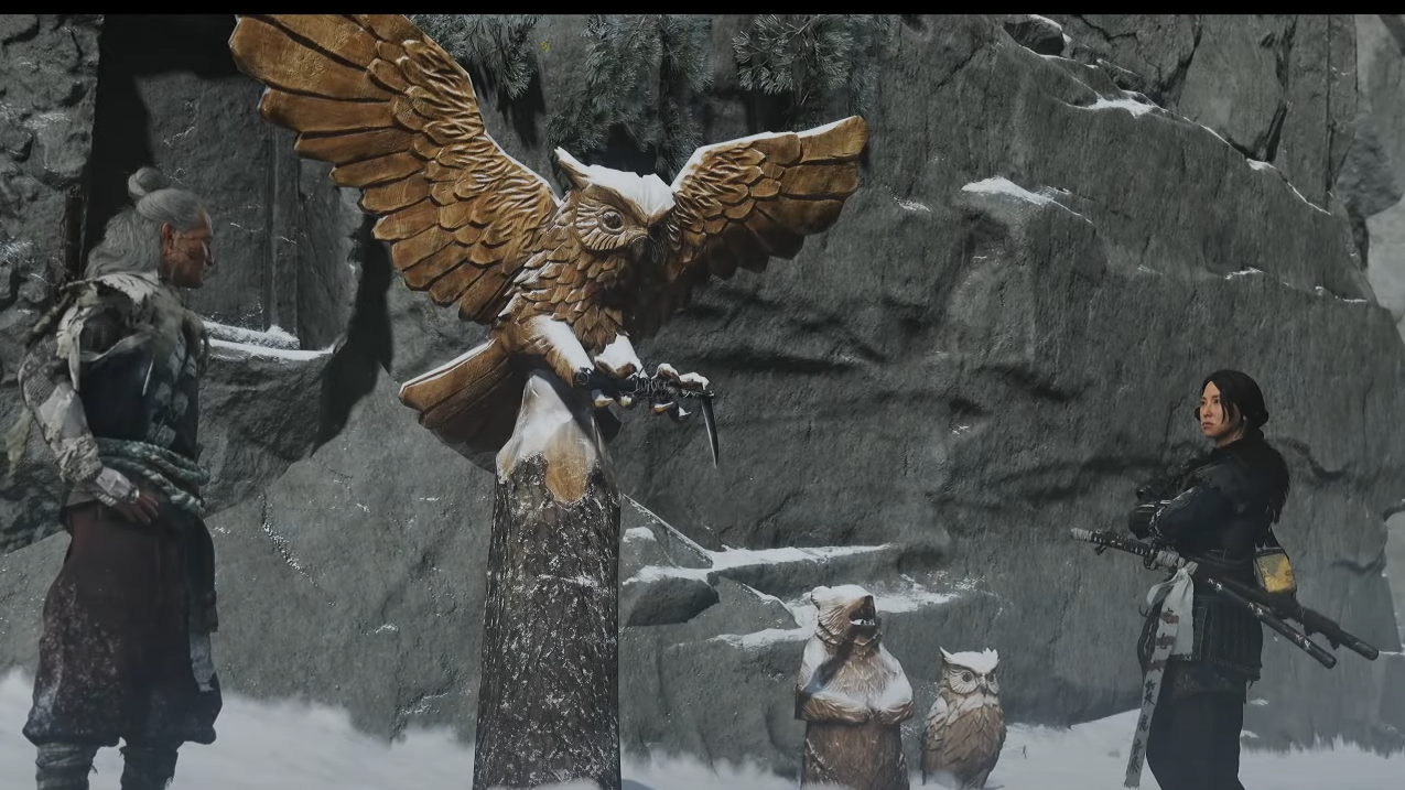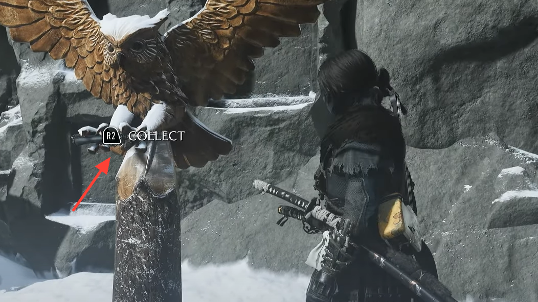 - Collect the kusarigama by interacting with the wooden owl statue after the cutscene.