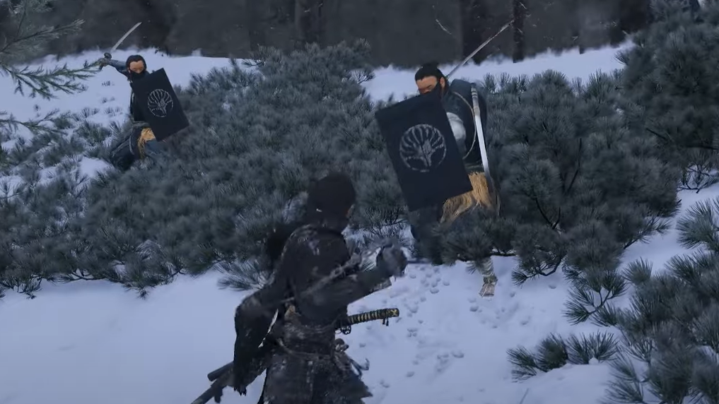 Follow Enomoto as he demonstrates a stealth takedown with the chain‑sickle, then clear the first group of enemies labeled “Nine Tails.” You’re free to fight loudly; stealth is not required. When the area is clear, a short cutscene places you at a wooden owl statue.