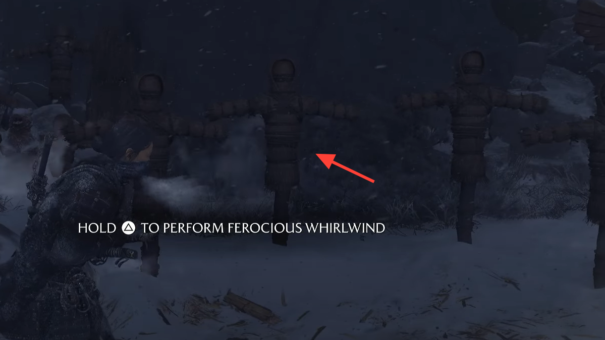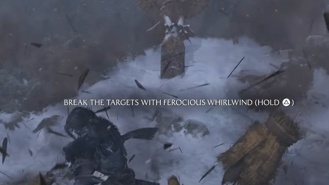 - Return to the training targets and perform charged heavy attacks again—this time they break under the “ferocious whirlwind.”