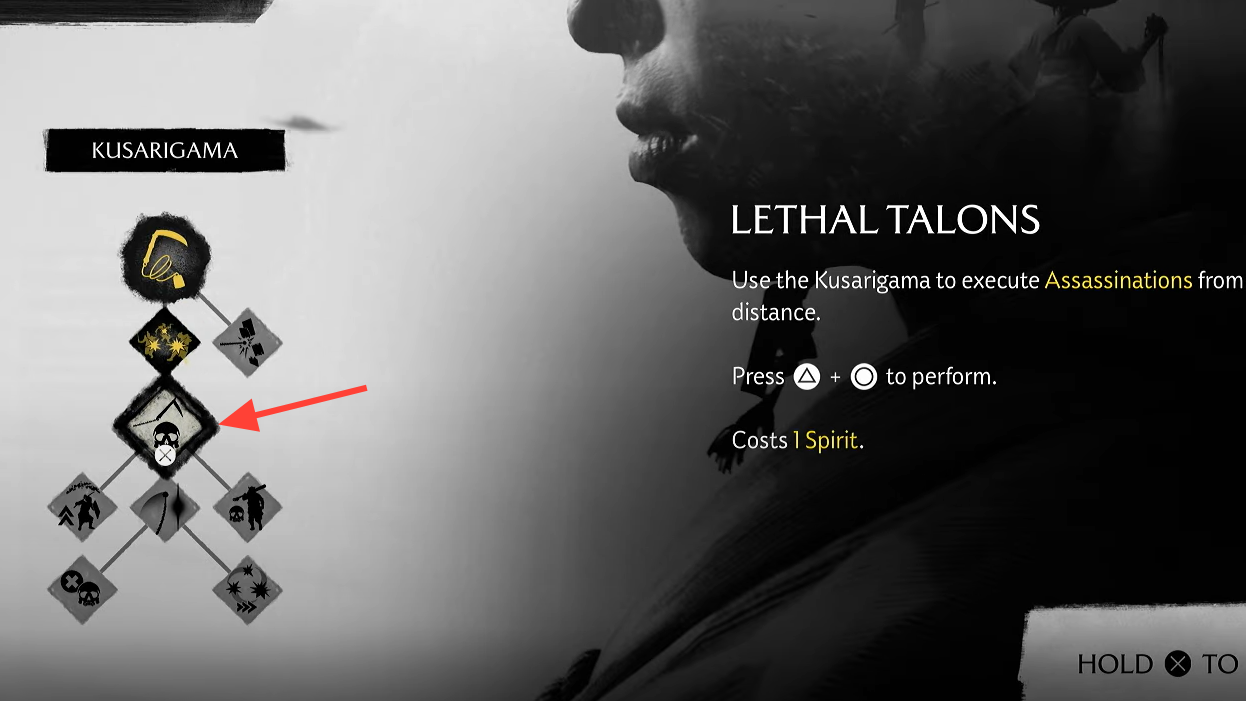 - Select the Melee tab, then the Kusarigama tree, and purchase any one skill.