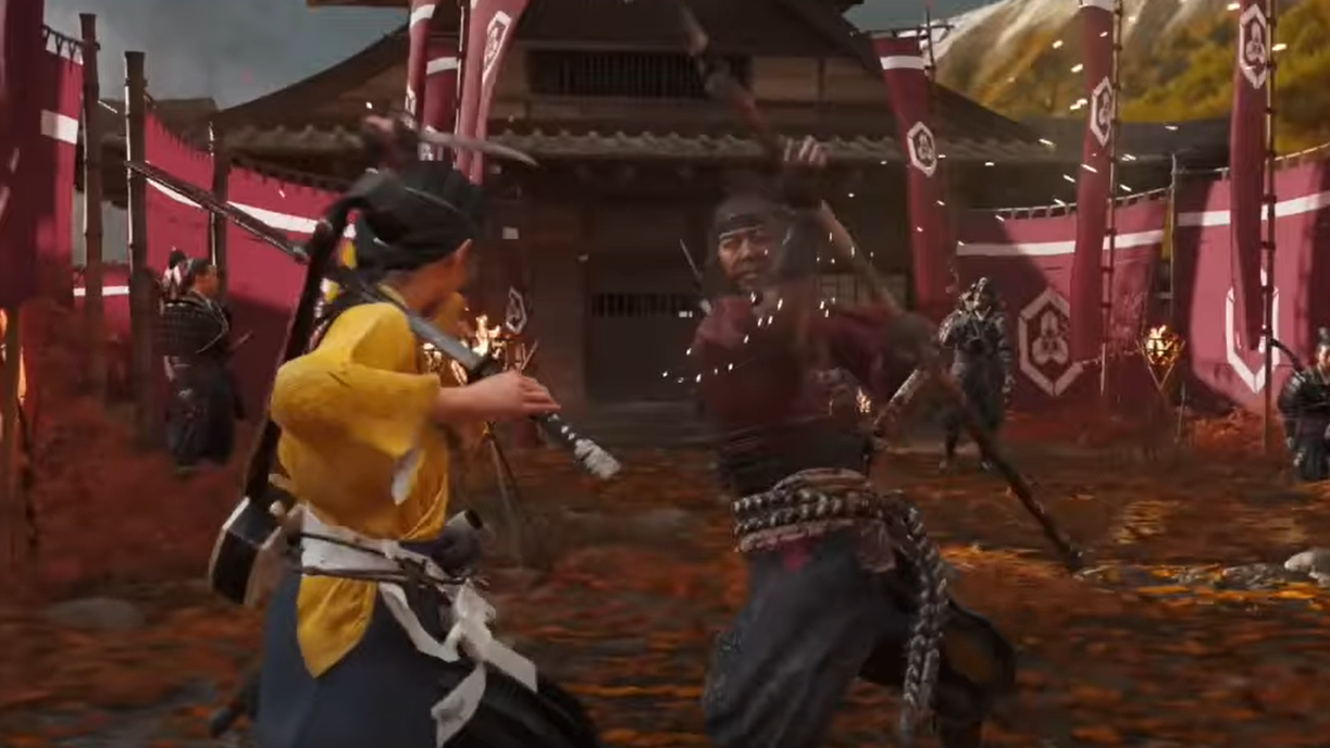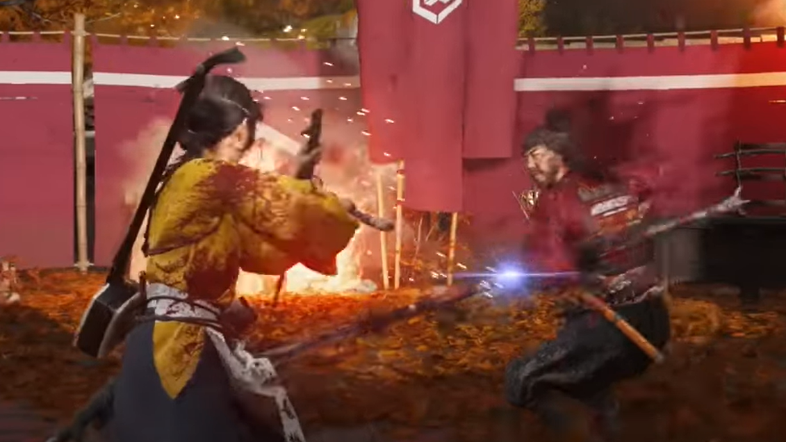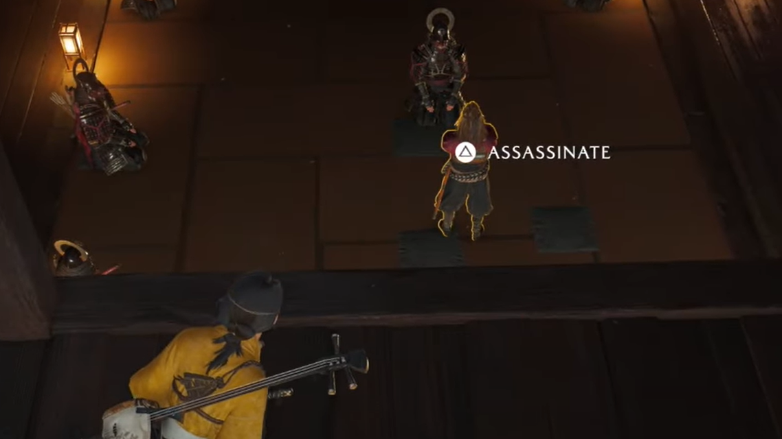 From the rafters, you’re positioned over Saito with an assassination prompt. He anticipates it. The attempt fails, and he leads you to a small arena for a one-on-one duel.