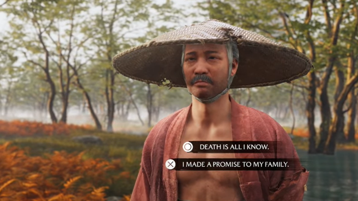 Inside, an outlaw recognizes Atsu and challenges you. This standoff is designed to teach that enemies can feint; you’ll likely get clipped but lose only a small amount of health. Cut down the outlaw and his nearby ally to proceed.