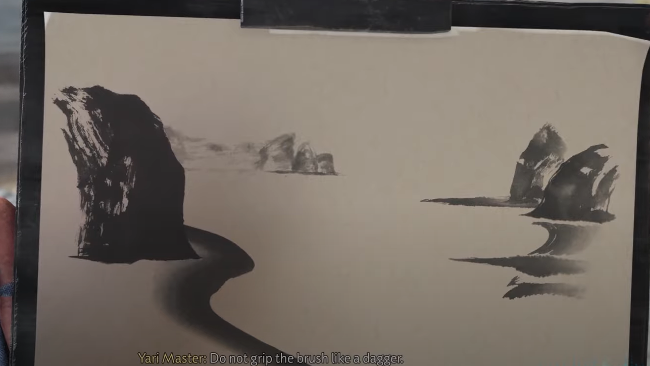 Painting in sumi‑e is as much a pause as it is progression. You can leave these for later without penalty, then sweep each region in a single session once fast travel is unlocked and your gear highlights nearby points. When the last open‑world mat is finished, the trophy pops — and you’ll have a set of stylish headwear to show for it.