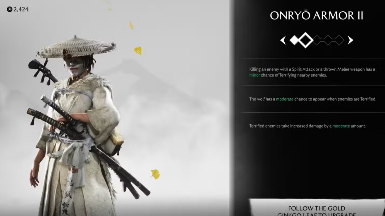 | Onryo Armor upgrade | End of the arc | Improves fear chances and Wolf’s Call interactions. |