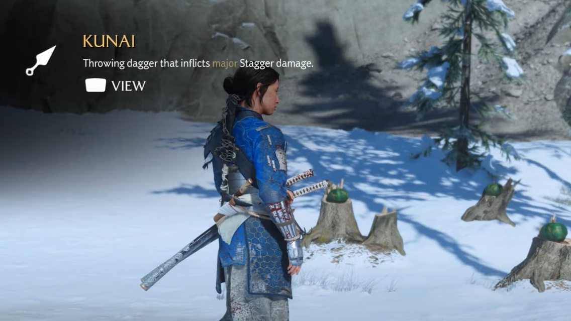 Travel to Hana’s Farm in the northwest of Teshio Ridge and examine the body outside the house to trigger the first encounter. A Nine Tails ambush hits immediately. Defeat them, and Hana will step in, hand you the Kunai quickfire weapon, and put you through a brief throwing practice.