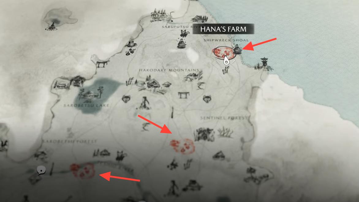 That’s the full circuit through Teshio Ridge. If a farm feels quiet on arrival, assume hidden spawns: step into yards, check behind houses, and look up for archers along the cliffs. Clear every pocket, wait for Hana to arrive, and the map will steer you to the next site until the region is safe.