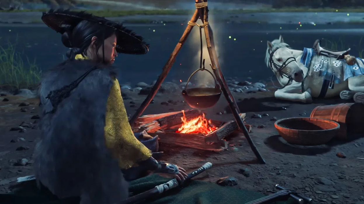 Yōtei leans into organic discovery. The pitch is fewer explicit side-activity markers and more wandering, rumors, and the occasional visitor who finds you. A unique camping system brings NPCs to your fire with quests and intel, reinforcing that “let the world come to you” rhythm. Progression tracks with your behavior, too: do more stealth and you unlock stealth skills sooner; lean on swords and bows and those lines grow first.