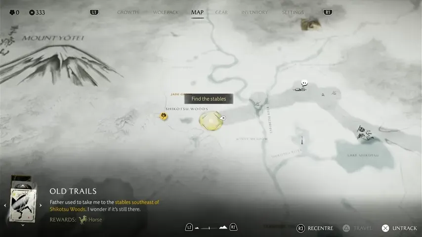 You’ll learn about “Old Trails” after arriving at Atsu’s home. She recalls visiting stables west of the river—track that point of interest on your map.