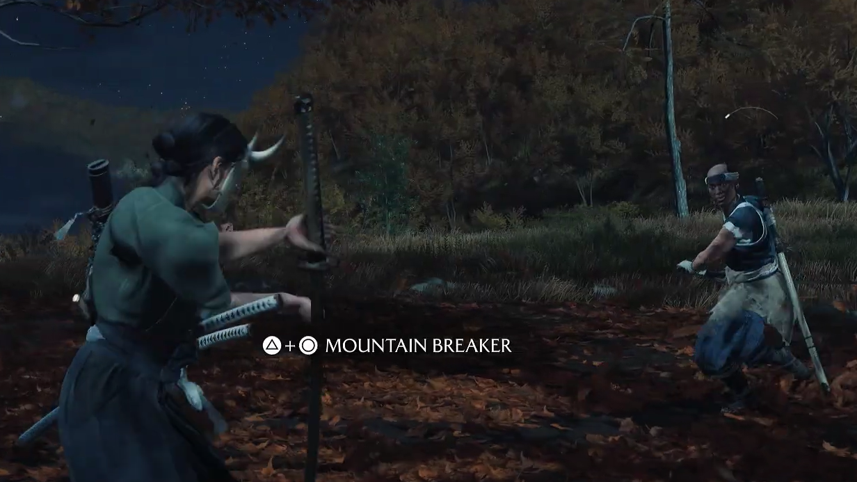 - The Odachi’s Redemption (Sensei Tale): Back at the dojo, study the scrolls, then follow Yoshida to the cliffside ring to learn Mountain Breaker, the Odachi’s Spirit attack. Hold Triangle + Circle to spend Spirit on a sweeping, guard-breaking spin that crushes clustered enemies—especially Brutes—then test it immediately against another Saito force that rides in after you light camp.