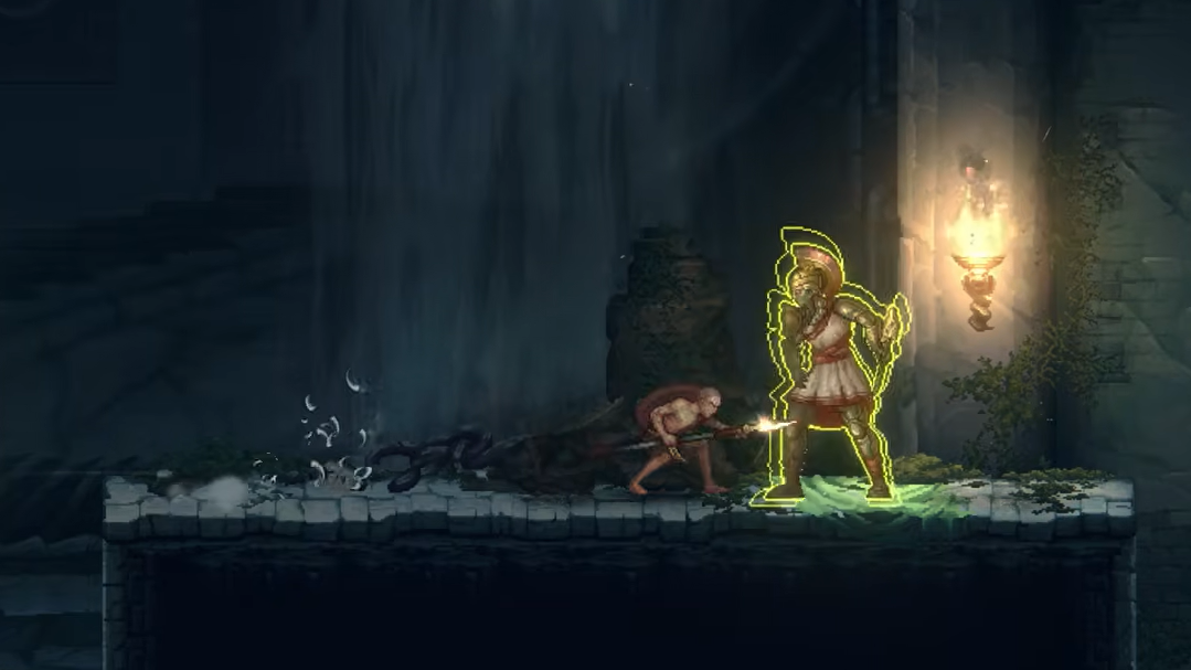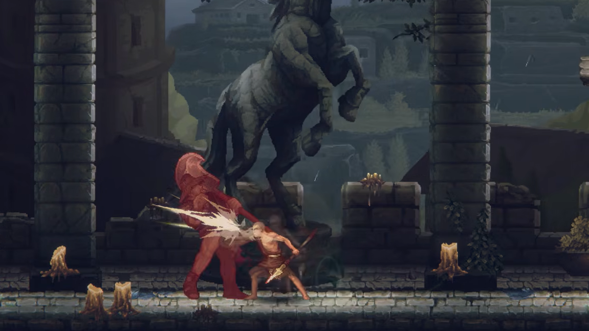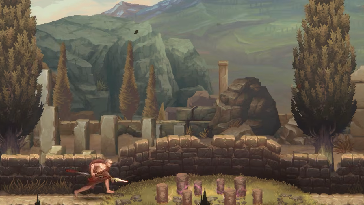 Mega Cat Studios — known for retro homebrew titles on NES and Sega Genesis hardware, plus games like WrestleQuest — brought a hi-bit pixel art style to Sons of Sparta. The visuals use dense pixel art with modern animation rigging, drawing comparisons to Ghosts 'n Goblins Resurrection. The aesthetic is divisive: some players appreciate the retro flavor and detailed environmental backgrounds, while others find it underwhelming compared to recent Metroidvanias like Blasphemous or Prince of Persia: The Lost Crown.