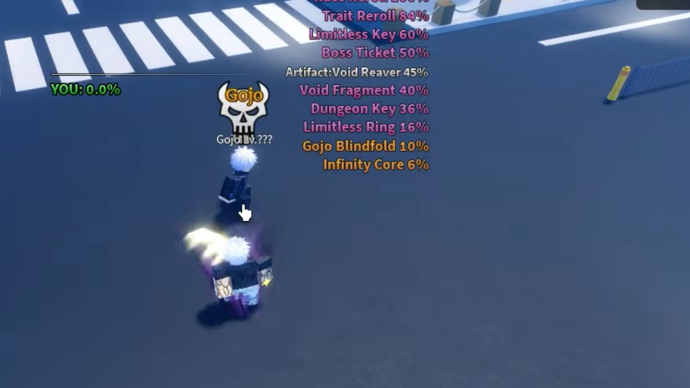 The materials drop from the Limitless Sorcerer boss, which spawns naturally in Shibuya on a timer. Server hopping is the fastest way to find fresh spawns without waiting.