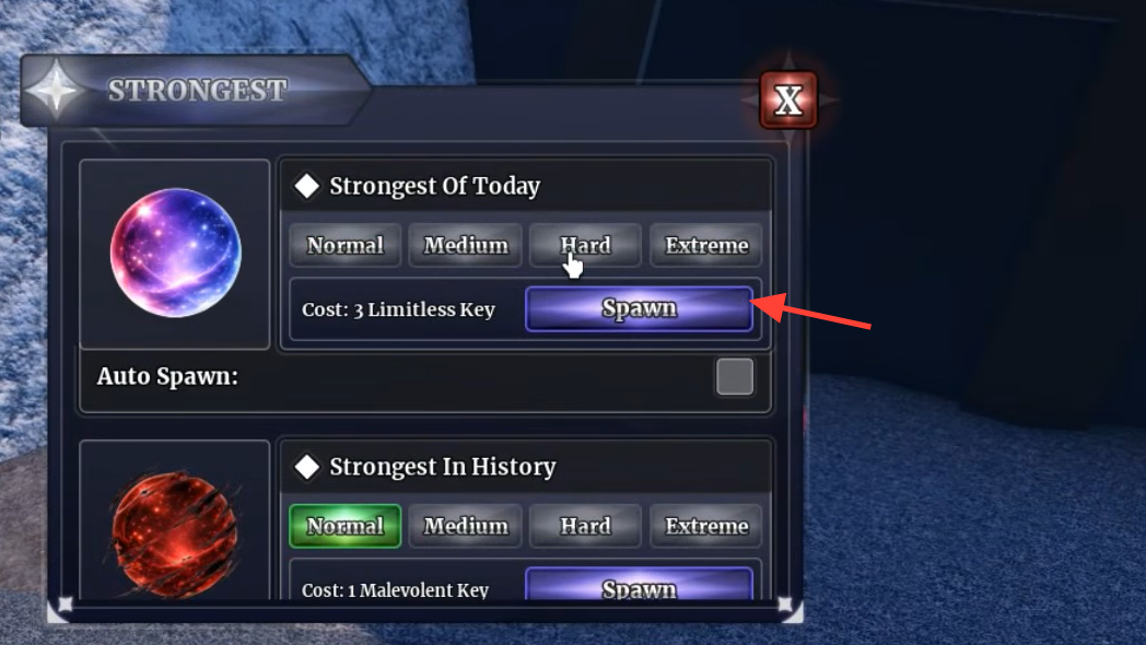 V2 lives on Shinjuku Island. Unlike the V1 boss, the Strongest of Today does not spawn on its own — you have to summon him manually using Limitless Keys at the Strongest Boss Summoner NPC. Limitless Keys themselves drop from the Limitless Sorcerer boss in Shibuya, so expect to farm V1's boss longer than the V1 unlock alone demands.