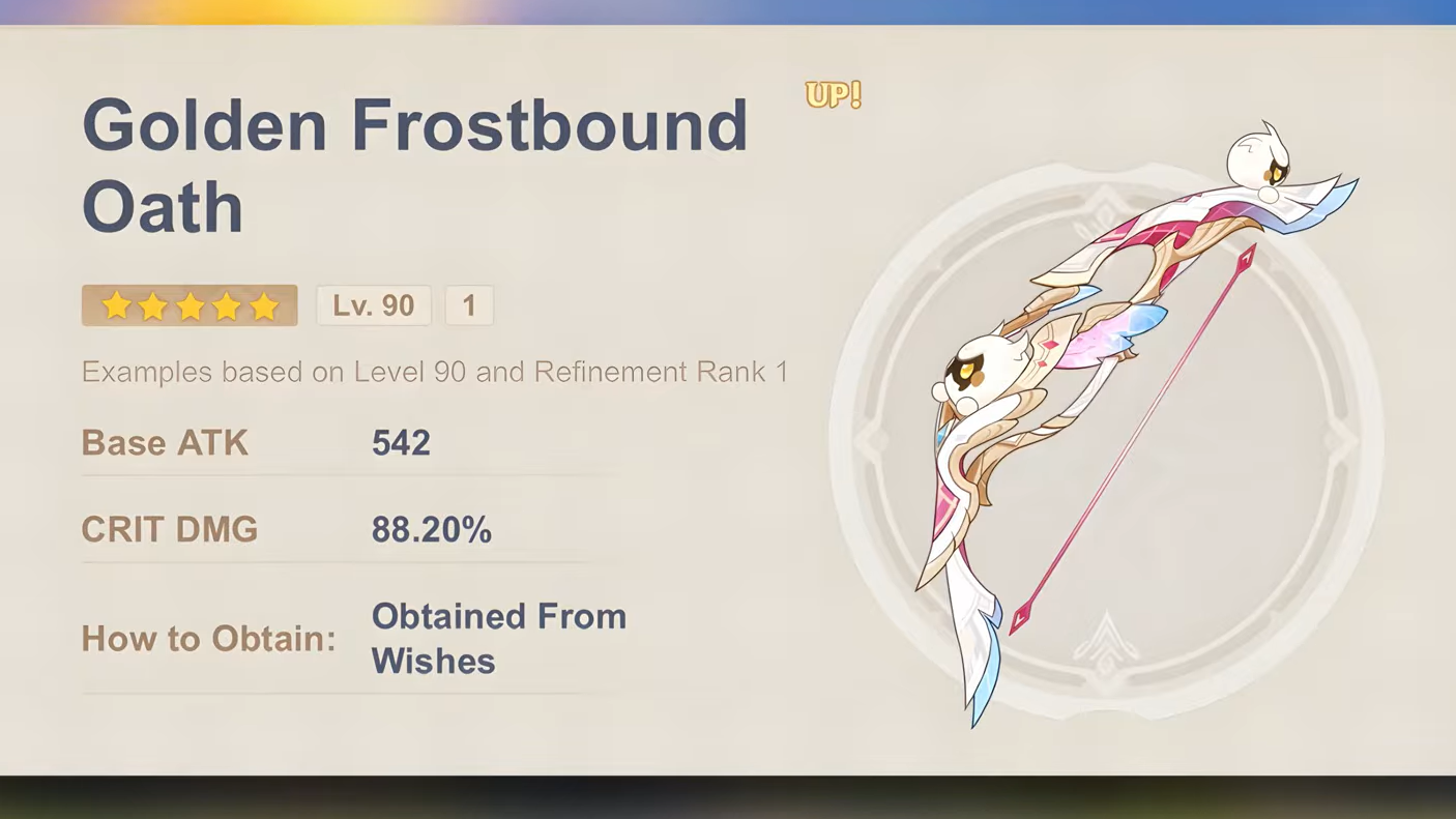 Golden Frostbound Oath is a 5-star Bow arriving in Genshin Impact Version 6.5 (Luna VI) as Linnea's signature weapon. It is her best-in-slot option and the only weapon that provides a partywide Lunar-Crystallize damage buff. The natural question for anyone pulling Linnea is whether the bow justifies the extra Primogem investment on top of securing the character herself.