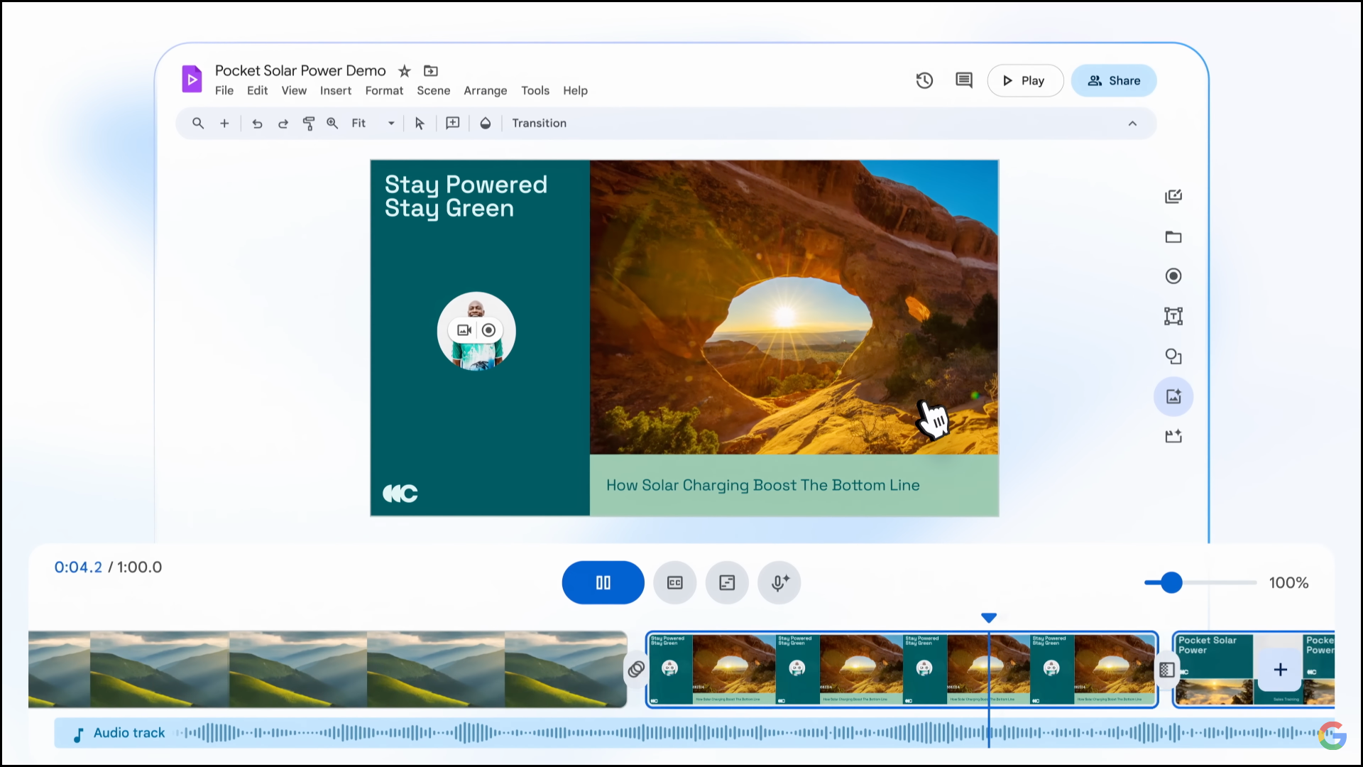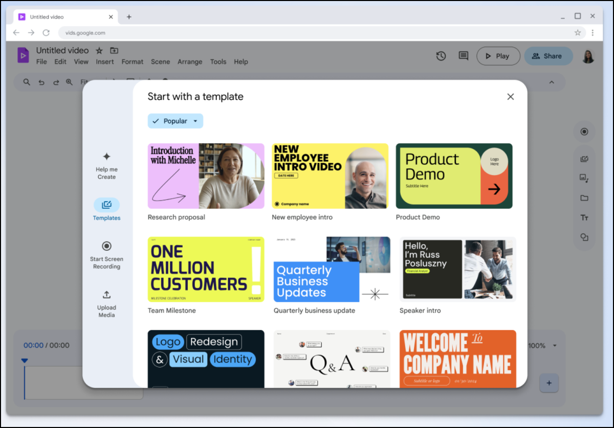 Like a video tool, you can then rearrange parts of the video, add transitions, select styles and templates, add voice-overs and scripts, and even add your own recorded videos. Like other Google Workspace tools, you'll also be able to collaborate in real-time in the browser.