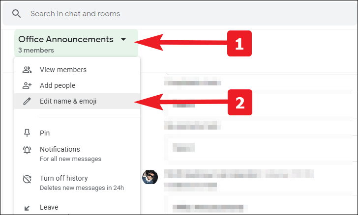 Tap on the name of the Room from the top section of the screen. Then, click on the ‘Edit name & emoji’ option.