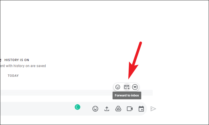 Hover over the message you want to forward from the chat window. Next, click on the ‘Forward to inbox’ icon.