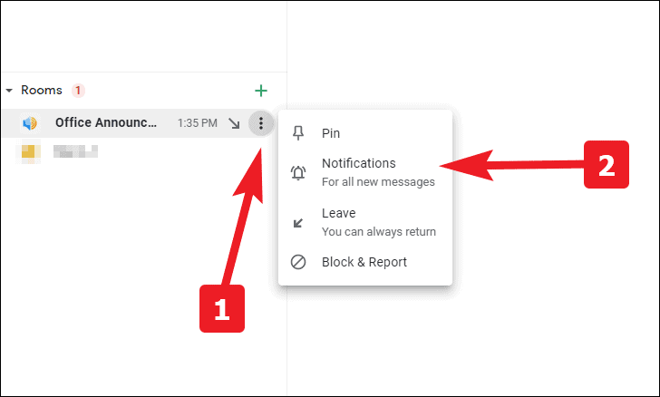 You can also completely turn off notifications for a particular Room, group, or person. However, Google will send you a mail for any unread mentions.