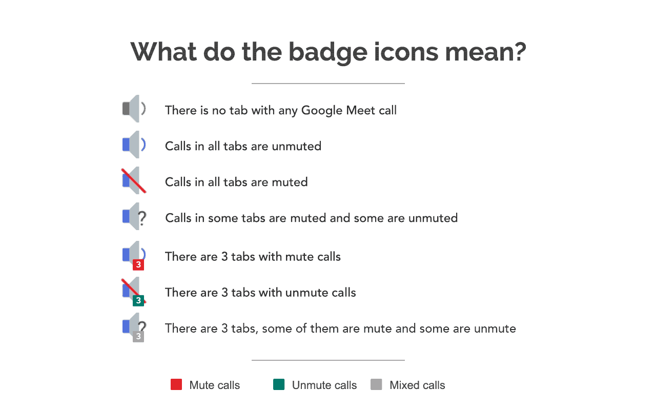 This add-on also displays the number of ongoing Google Meets on the mute button. There is an indication of how many meetings are muted and how many aren’t as well. A red muted sign would mean that all the Google Meet sessions are muted, whereas a green sign would mean that none of the sessions are muted. However, a blue sign would indicate that only some meetings are muted.