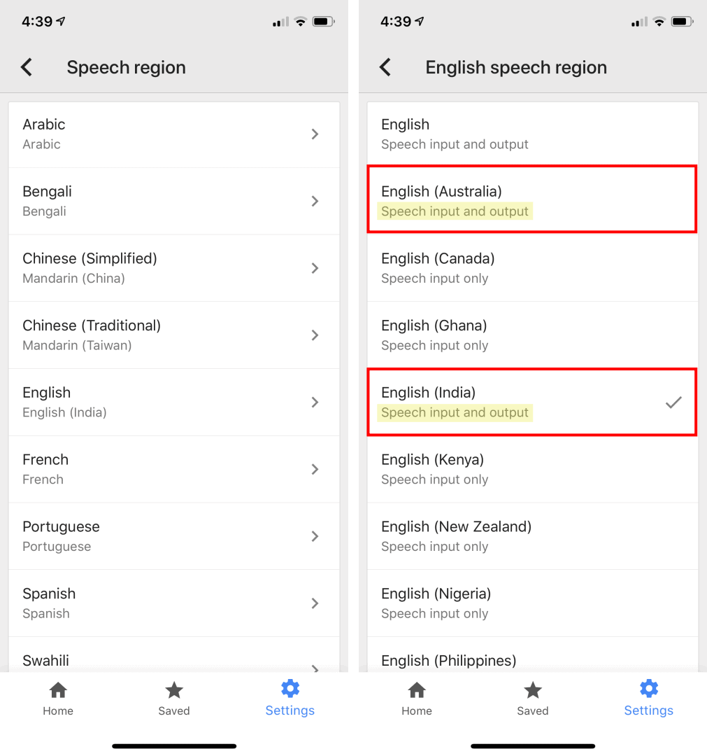 The Google Translate app for iOS is receiving an update today with support for regional language options for “speech input and output” for the following countries and languages: