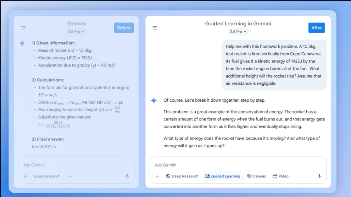 Gemini’s Guided Learning mode moves away from simply providing direct answers. Instead, it prompts users with open-ended questions, encourages critical thinking, and adapts its explanations based on the learner’s needs. This approach supports mastery of complex subjects by focusing on the “how” and “why,” not just the “what.”