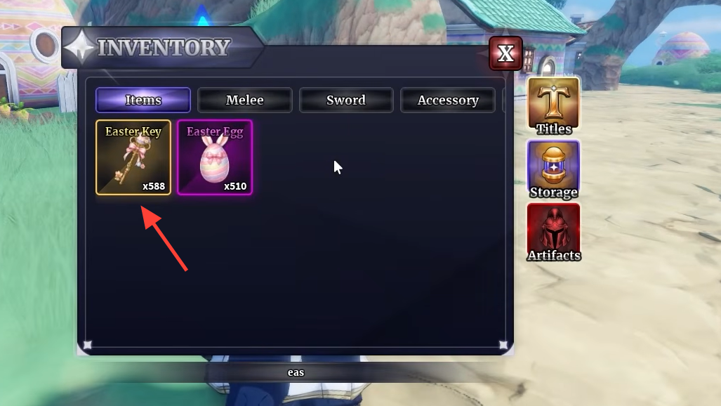 Step 2: Once your egg count hits 1,500, walk to the Easter Shop NPC in the middle of the island and press E to open the catalog.