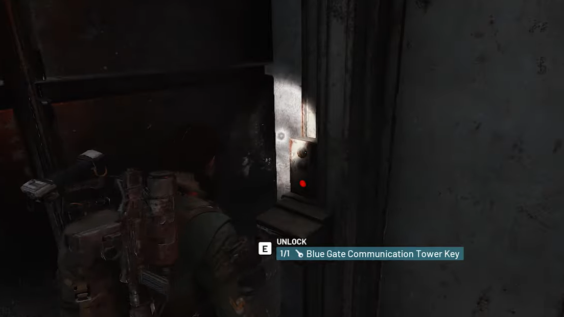 Step 4: Interact with the door using the Blue Gate Communication Tower Key. If the door is already open when you arrive, you can walk in without spending your key and decide to hold the key for a later run. Either way, stepping inside the room will advance the quest.