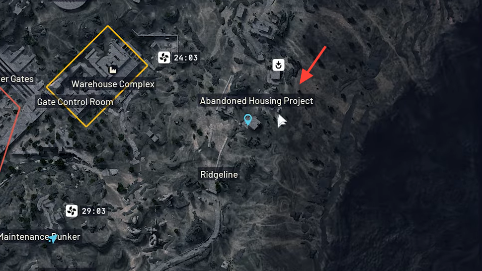 Step 1: Open your Blue Gate map and locate the Abandoned Housing Project point of interest to the south or southwest of Pilgrim’s Peak. This area often serves as a spawn zone for players, so approach with the assumption that other raiders may already be looting or holding angles there.