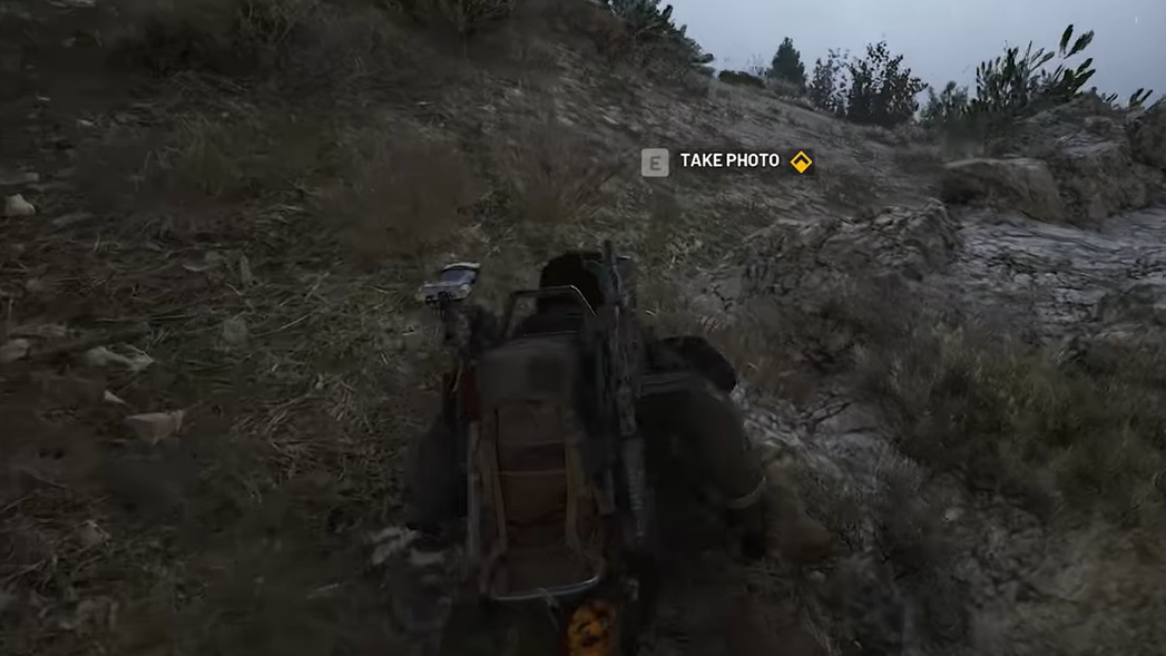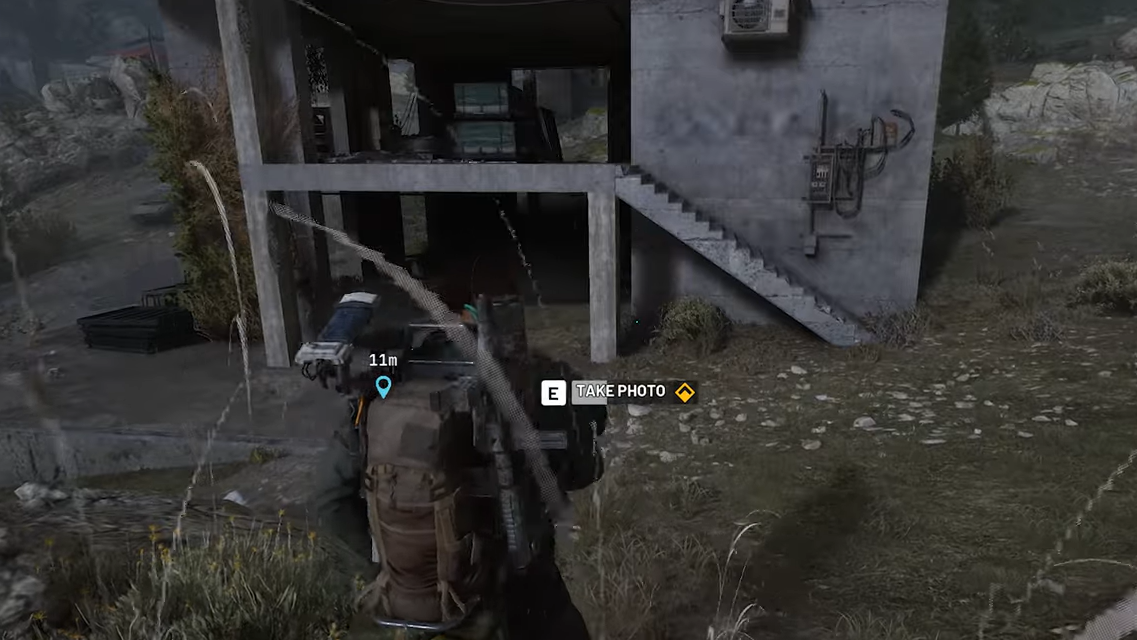 Step 2: Move into the marked circle and hold the interaction button to “Take photo” when the prompt appears. The exact spot is fairly strict; if you do not see the prompt, adjust slightly left or right along the slope or step forward and back until it appears. Multiple interaction spots can exist around this building, but any of them count as long as the prompt specifically refers to photographing the abandoned housing project.