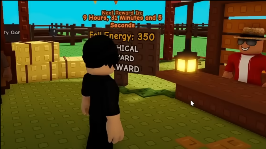 Step 5: Track your progress on the signboard to the left of the stall. It shows your current Fall Energy total and the reward tier you’re on pace to hit at reset.