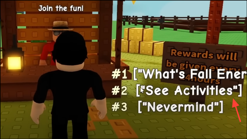 Step 1: Go to the Fall Activities stall opposite the Fall Tree and face the vendor behind the counter. This is the only place to pick up Fall Activities.