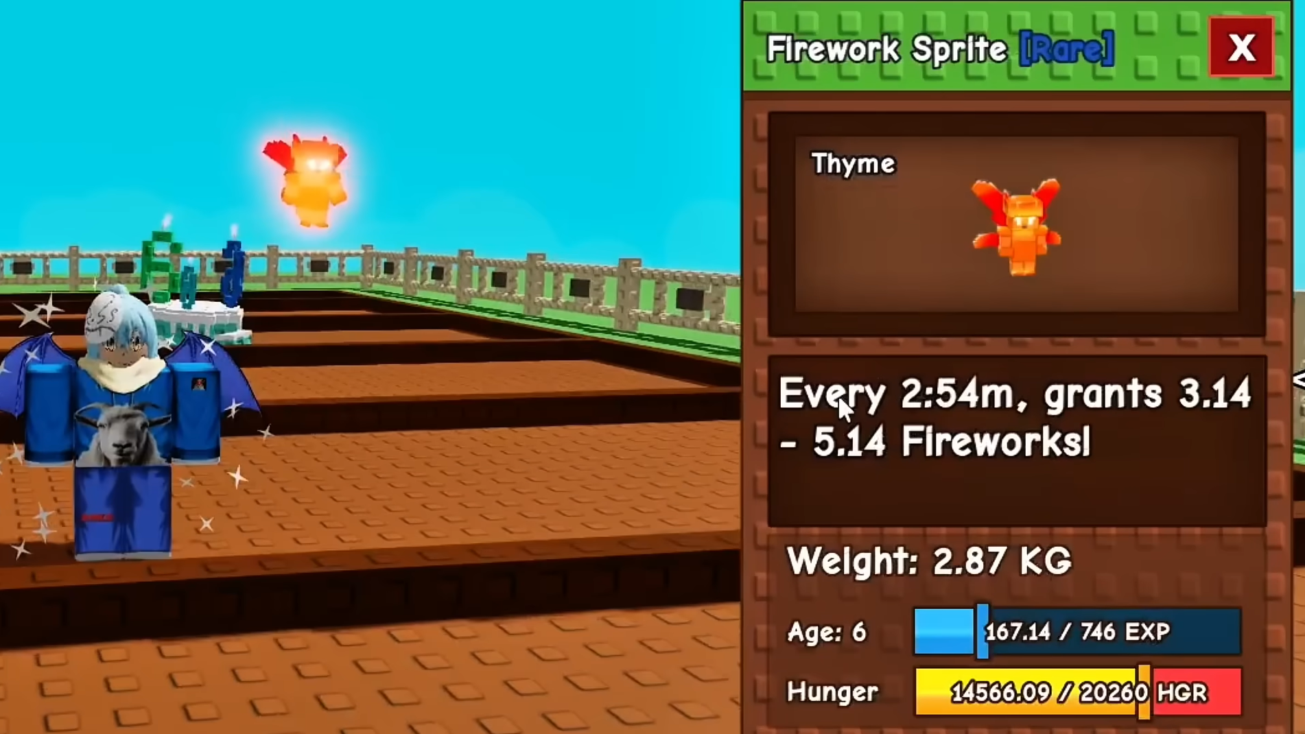 | New Year’s Dragon | Prismatic | 0.25% | Breathes fireworks onto a wide set of fruits to apply the Firework mutation, and later consumes Firework‑mutated fruit to create the Dragon’s Firework gear. |