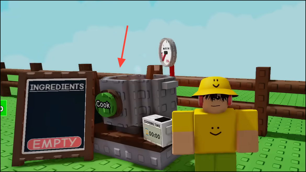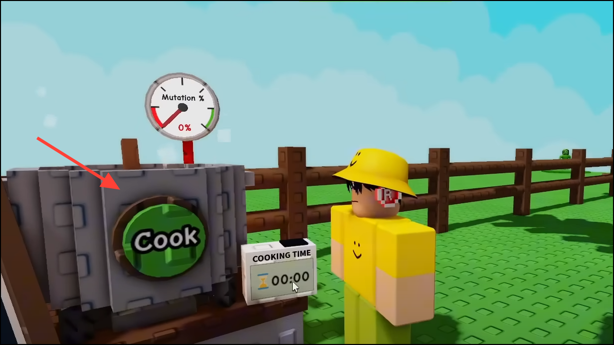 Step 3: Press the big green Cook button when your recipe is ready. Cook time scales with the total weight and count of crops. Expect a minimum of about five minutes per dish; you can skip for Robux if you prefer.