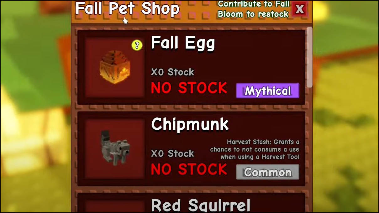 - Chipmunk — 150,000,000 Sheckles, unlocks after 4 Fall Bloom contributions.
