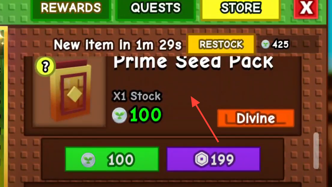 The Season Pass Shop also sells the Prime Seed Pack on a rotating slot. The pack only shows up around 20% of the time. When it’s in stock, expect a Pass Points price; 500 Pass Points is the typical listing, and some in-game listings also surface a direct 199 Robux purchase button. Pass Points come from pass tiers and post-pass XP thresholds.